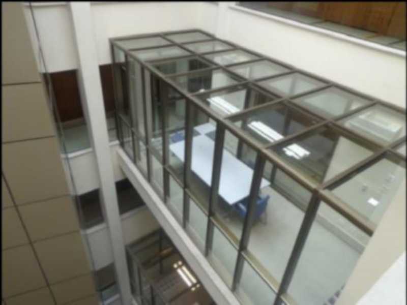 3) Ar condicionado: O sistema de ar condicionado central é à base de água gelada, com dois chillers com capacidades de 65 TR e 130 TR e torres de arrefecimento instaladas no terraço da cobertura, contando com fan coils instalados nos rebaixos do teto