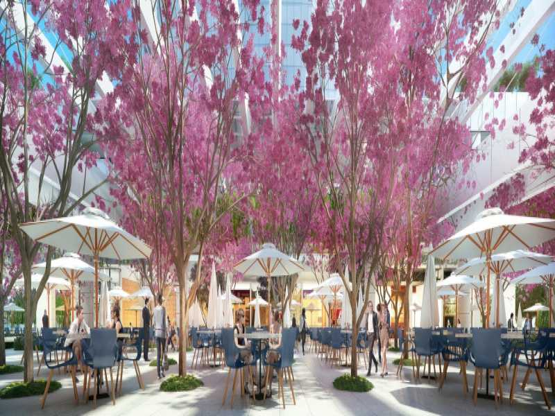 >Shopping aberto de 1.700 m² com 22 lojas, incluindo restaurantes, cafeterias, drogarias e outros serviços