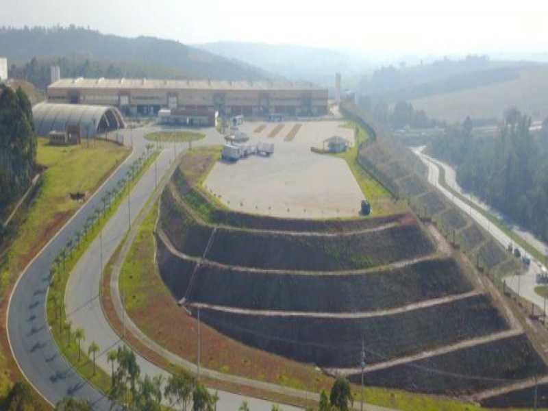 Portaria e pátio de caminhões com área de apoio