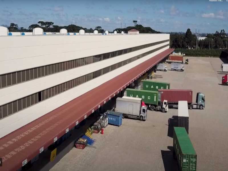 Área de pátio externo para caminhões e visitantes