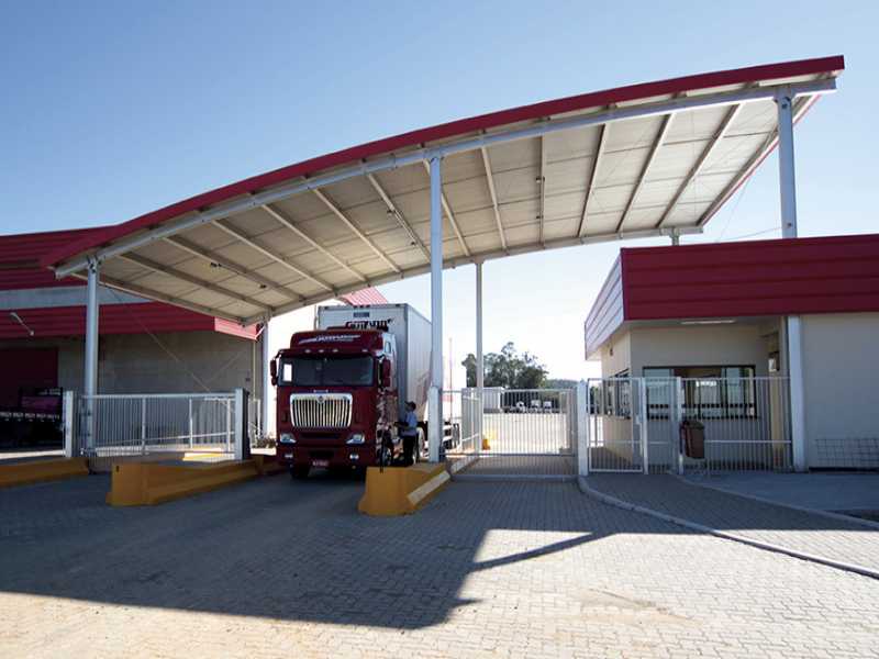• Cobertura em estrutura metálica com telha zipada com domos de policarbonato nos corredores e renovadores de ar natural.